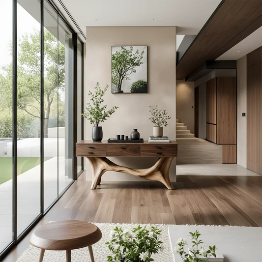 Sculptural Solid Wood Console Table — Organic Japandi Entryway Art Piece