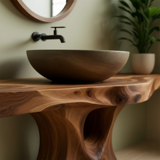 Sculptural Live Edge Solid Wood Vanity – Organic Japandi Bathroom Console